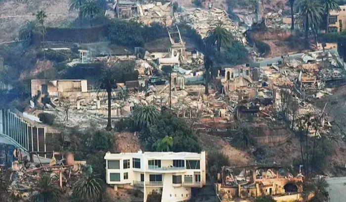 في مشهد مثير وسط دمار شامل، يقف قصر ديفيد ستاينر في ماليبو كشاهد على حرائق لا تبقي ولا تذر، ففي حين التهمت النيران أكثر من 10,000 مبنى وأحرقت منازل مشاهير وأثرياء، ظل القصر الذي تبلغ قيمته 9 ملايين دولار قائمًا وسط الحطام، في معجزة تعكس قوة التخطيط والاحتياطات في مواجهة كارثة حرائق الغابات.
