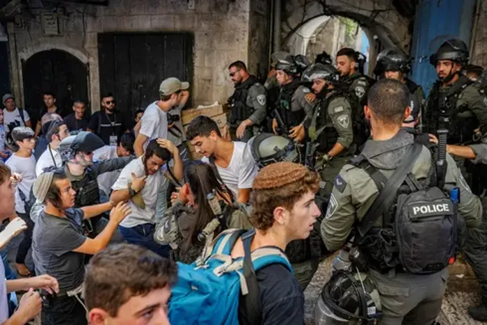 وأفادت مراسلتنا من القدس المحتلة، بأن أكثر من 900 مستوطن اقتحموا المسجد الأقصى، وأدوا طقوسًا تلمودية واستفزازية في باحاته، فيما رفعت مستوطنة علم الاحتلال عند المنطقة الشرقية من الأقصى، تزامنًا مع نشر شرطة الاحتلال حواجز حديدية في محيط باب العامود والبلدة القديمة للتضييق على المقدسيين، وسط إجراءات عسكرية مشددة.