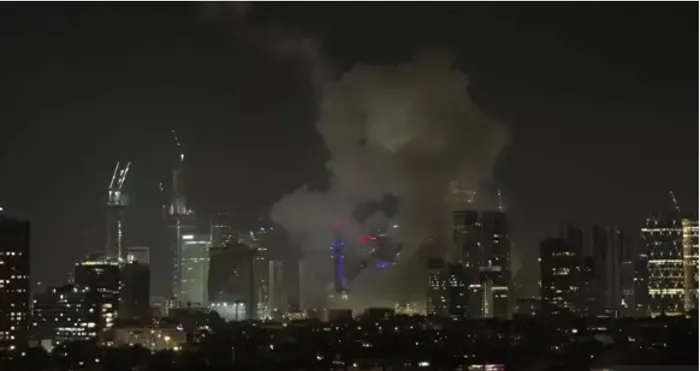 أظهرت اللقطات الواردة أعمدة ضخمة من الدخان تتصاعد فوق مدينة تل أبيب، في منطقة ناطحات السحاب، ويبدو أن الدخان يفوق في حجمه المباني الشاهقة المحيطة به، ولم يتضح بعد ما إذا كان الدخان ناجمًا عن الصواريخ أم عن عمليات الاعتراض.