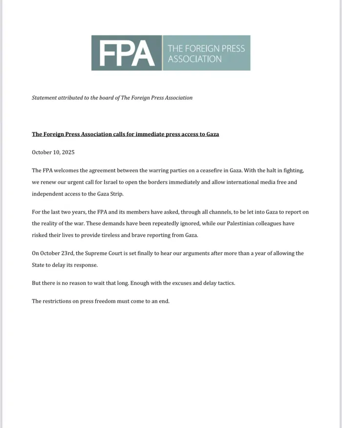 دعا العديد من الصحفيين الأجانب في إسرائيل إلى منحهم ووسائل الإعلام حق الوصول الفوري إلى قطاع غزة بعد سريان اتفاق شرم الشيخ ودخول وقف إطلاق النار حيز التنفيذ، لينضموا بذلك إلى قائمة طويلة من المنظمات الإعلامية الدولية التي تطالب بحرية عمل الصحافة في القطاع المدمّر.