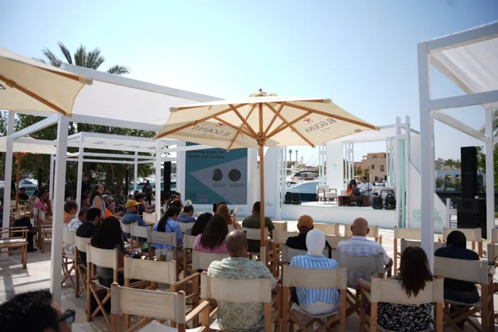 استضاف مهرجان الجونة السينمائي في دورته الثامنة جلسة حوارية بعنوان «صناعة الأغاني للسينما والدراما»، شاركت فيها الشاعرة منة القيعي والمنتج الموسيقي أحمد طارق يحيى، وسط حضور لافت من نجوم الشباب، منهم هنادي مهنا، عمرو وهبة، علي البيلي، يوسف حشيش، والمغنيان زياد ظاظا ويوسف جابريال.