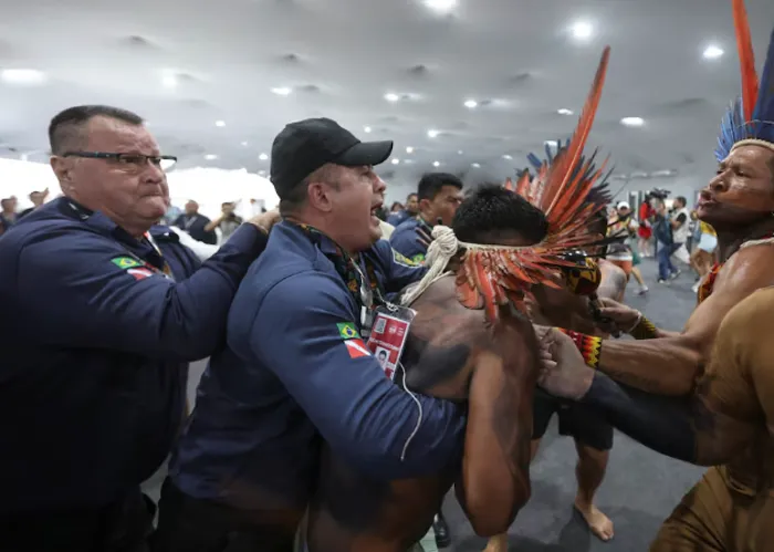 وشهد اليوم الثاني اقتحام عشرات المحتجين من السكان الأصليين مقر انعقاد قمة المناخCOP30، بحسب رويترز، واشتبكوا مع حراس الأمن، مطالبين بالوصول إلى مجمع الأمم المتحدة حيث يشارك آلاف المندوبين من بلدان حول العالم في قمة الأمم المتحدة للمناخ.