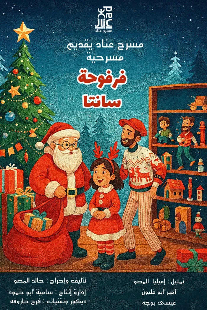 واستكمالا للمقاومة وفرحة للأطفال أعلن مسرح عناد في بيت جالا عن تقديم مسرحيته الجديدة "فرفوحة سانتا"، المخصصة للأطفال ضمن أجواء احتفالات الميلاد. تأتي المسرحية من تأليف وإخراج خالد المصو، وإدارة إنتاج سامية أبو حمود، فيما يتولى فرح جاروفه تنفيذ الديكور، ويشارك في العمل كل من الفنانة إميليا المصو وأمير أبو جليون وعيسى بوجه، ليقدموا عرضًا يهدف إلى إدخال البهجة إلى قلوب الصغار وإحياء روح عيد الميلاد في ظل الظروف الصعبة التي تشهدها فلسطين.