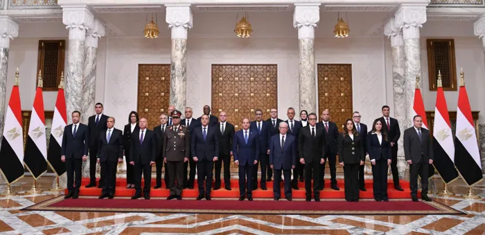صورة تذكارية للرئيس المصري عبدالفتاح السيسي يتوسط أعضاء الحكومة الجديدة