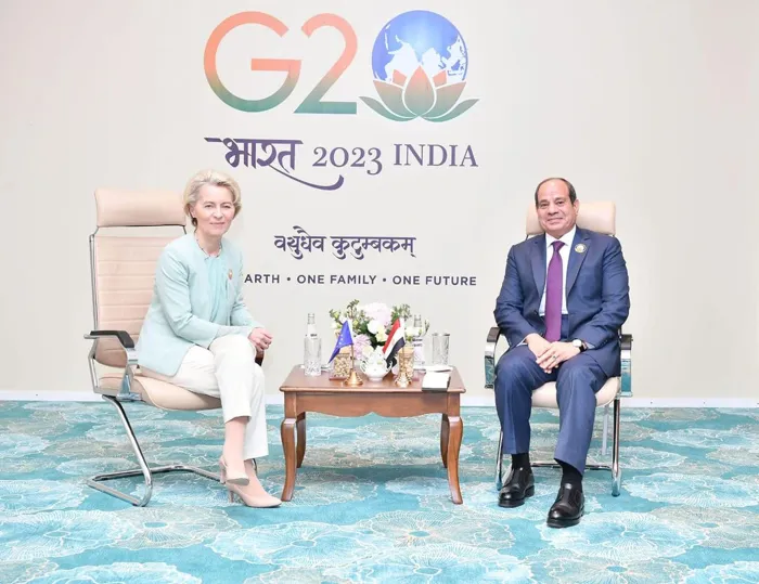 التقى الرئيس المصري عبد الفتاح السيسي، اليوم السبت، أورسولا فون ديرلاين، رئيسة المفوضية الأوروبية، على هامش انعقاد قمة مجموعة العشرين بالهند.