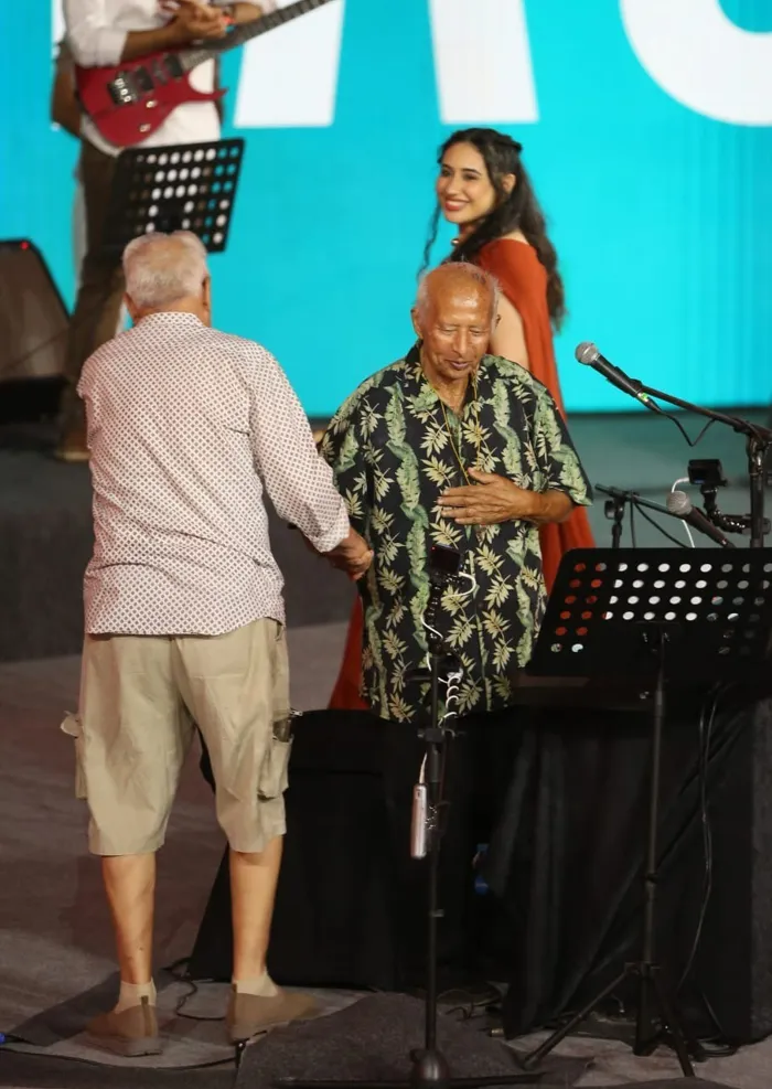 وفي لفتة طيبة، صعد والد المطربة منى العطار، إحدى عضوات فرقة المصريين على المسرح لإلقاء التحية على ابنته والجمهور، ووصف "شنودة" بأنه "مايسترو مصر"، ليمازحه الأخير: "طالما في صالحي هعديها".