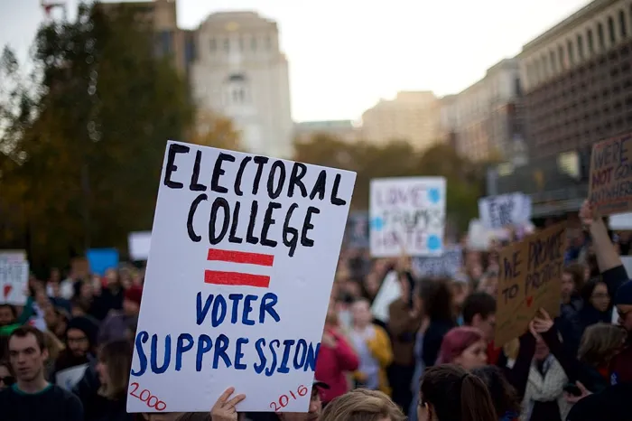 وفي عام 1787، وصل المندوبون للمؤتمر الدستوري في فيلادلفيا إلى طريق مسدود بشأن كيفية اختيار الرئيس، فبدلًا من انتخاب رئيس من خلال تصويت في الكونجرس أو من خلال تصويت شعبي للمواطنين، توصلوا إلى حل وسط ووافقوا على وجود المجمع الانتخابي.