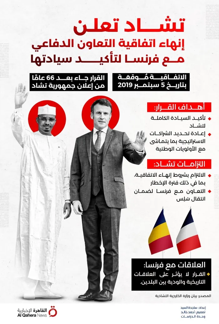 في 28 نوفمبر 2024، أعلن وزير الخارجية التشادي "عبد الرحمن كلام الله" أن بلاده ألغت اتفاقية التعاون الدفاعي التي تمت مراجعتها في 5 سبتمبر 2019 مع فرنسا، لتُسدل الستار على فصل من العلاقات الثنائية بين البلدين، وتمثل هذه الخطوة أحدث حلقات تراجُع العلاقات الفرنسية الإفريقية التي تشهد توترات متزايدة في الآونة الأخيرة، وضربة جديدة للنفوذ الفرنسي في إفريقيا على خلفية التحولات السياسية والأمنية في إفريقيا. وفي مؤتمر صحفي عُقِد في نجامينا عقب اجتماع بين الرئيس التشادي محمد إدريس ديبي إتنو ووزير الخارجية الفرنسي، اختتم كلام الله حديثه بِحَثْ فرنسا على الاعتراف بأن تشاد نمت ونضجت، وأكد أن تشاد دولة ذات سيادة تولي قيمة كبيرة لسيادتها، وتأتي هذه الخطوة بعد سلسلة من التحرُكات المماثلة التي قامت بها دول إفريقية أخرى في إطار تصاعُد الرفض للنفوذ الفرنسي التقليدي في القارة.