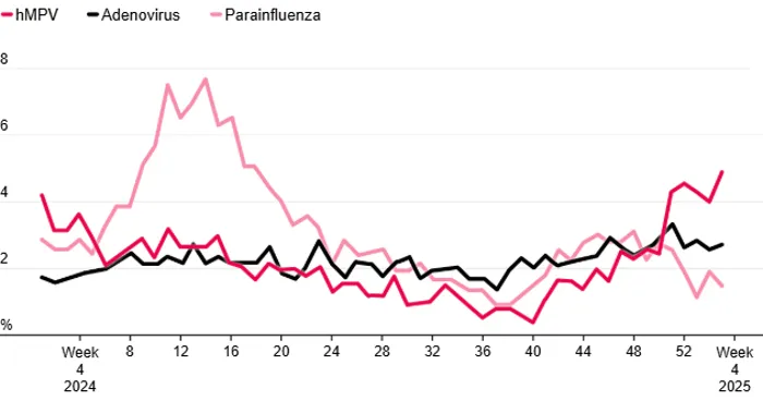 وشهد الأشخاص الذين تتراوح أعمارهم بين 65 و79 عامًا أيضًا ارتفاعًا مشابهًا في حالات الإصابة، حيث بلغت نسبة المرضى الذين ثبتت إصابتهم بفيروس التهاب الجهاز التنفسي 5.6%، ارتفاعًا من 3.4% في منتصف ديسمبر.