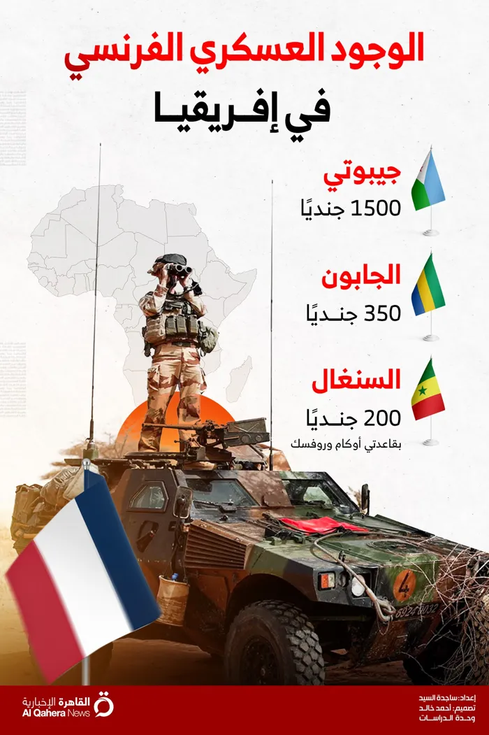(&) طَرْد القوات الفرنسية: عقب سلسلة من الأحداث السياسية والاجتماعية في العديد من دول الساحل الإفريقي، قررت فرنسا تقليص وجودها العسكري تدريجيًا في بعض البلدان. في عام 2013، أطلقت فرنسا عملية "سرفال" في مالي لكبح الوجود الإرهابي، لكن لاحقًا تم استبدال هذه العملية بـ"عملية برخان" في عام 2014، التي كانت تهدف لمواجهة التهديدات الأمنية في منطقة الساحل الإفريقي. وشهدت فرنسا تراجعًا ملحوظًا في العديد من دول غرب إفريقيا، حيث انسحبت قواتها بشكل تدريجي من مناطق كانت تحت نفوذها العسكري لعدة عقود. في أغسطس 2023، أعلنت مالي عن طرد القوات الفرنسية بعد سنوات من التعاون العسكري في إطار مكافحة الإرهاب، تبعتها بوركينا فاسو، التي طلبت مُغادرة القوات الفرنسية في نفس العام. وفي نوفمبر 2023، قررت النيجر اتخاذ خطوات مماثلة بطرد القوات الفرنسية، مما عزز التوترات مع باريس. علاوة على ذلك، في ديسمبر 2023، أعاد الجيش التشادي السيطرة على قاعدة فايا العسكرية، بعد إعلان الحكومة التشادية في 28 نوفمبر عن إلغاء اتفاقية التعاون الدفاعي مع فرنسا. هذه التحولات، التي تمت بالتوازي مع الدعوات المُتزايدة لإغلاق القواعد العسكرية الفرنسية، تُشير إلى تحول كبير في العلاقات بين فرنسا وهذه الدول.