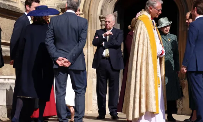 وابتسم الأمير أندرو لدى ظهوره في قداس عيد الفصح مع أفراد آخرين من العائلة المالكة، بمن فيهم الملك تشارلز والملكة كاميلا.