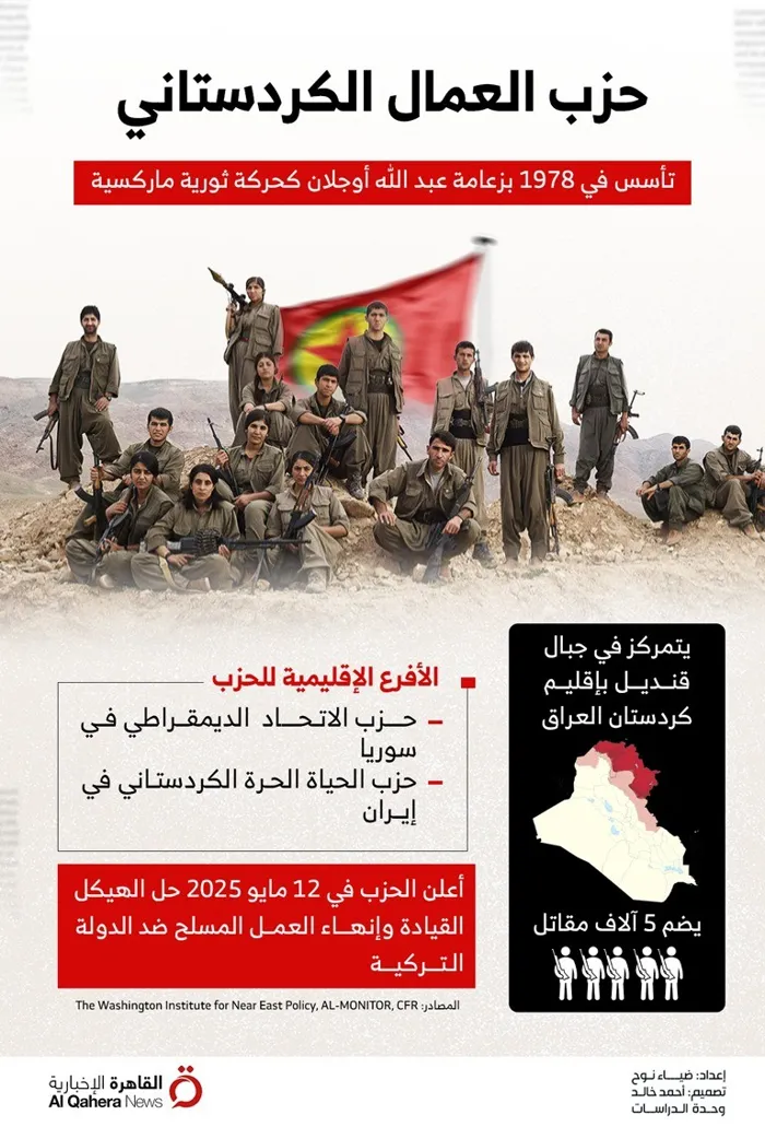 بعد عقد مؤتمره الثاني عشر التاريخي في الفترة من 7 إلى 9 مايو 2025، أعلن حزب العمال الكردستاني في 12 مايو الجاري حل هيكله التنظيمي وإلقاء سلاحه، استجابة لدعوة زعيم الحزب عبد الله أوجلان في 27 فبراير الماضي، في إطار مبادرة الائتلاف الحاكم "تركيا خالية من الإرهاب" لحل الحزب وإنهاء حقبة الصراع المسلح مقابل تعزيز انخراط الأكراد في الحياة السياسية ودعم حقوقهم الثقافية والسياسية دستوريًا.
