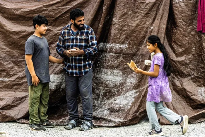 ويضيف: "استعنت بأطفالي لتمثيل الأدوار الرئيسية في الفيلم، لأنني أردت أن يكون الأداء صادقًا لأقصى حد. ابني لعب دور "أحمد" الذي يُستشهد في الفيلم، وابنتي أدت دور "سمر"، الطفلة التي تُبتر قدمها. وقبل الحرب بأسابيع، كنت قد أخذت أطفالي إلى غزة، والتقينا بعائلتنا هناك، رأوا بأعينهم البيوت المهدمة، الشوارع القديمة، والناس الذين يعيشون في ظل القصف والحصار. هذه الزيارة زرعت فيهم شيئًا عميقًا، جعلهم يتواصلون روحيًا وعاطفيًا مع القضية. لذلك، عندما وقفوا أمام الكاميرا، لم يكونوا يؤدون أدوارًا… بل كانوا يُجسدون واقعًا رأوه، وشعروا به، وحملوه معهم. ولهذا السبب، كان كل شيء في الفيلم نابضًا بالصدق".