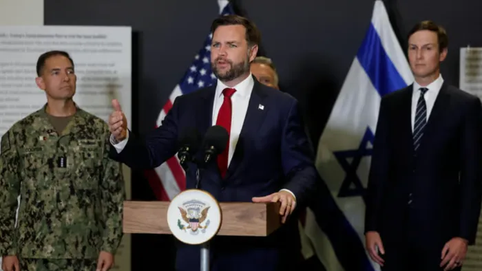 في تطور جديد ضمن جهود تنفيذ خطة السلام التي أعلنها الرئيس الأمريكي دونالد ترامب، عقد نائب الرئيس الأمريكي جيه دي فانس مؤتمرًا صحفيًا في المقر الأمريكي بمدينة كريات جات جنوب تل أبيب، بحضور المبعوثين الأمريكيين ستيف ويتكوف وجاريد كوشنر، لمتابعة تنفيذ الاتفاق بين إسرائيل وحماس.