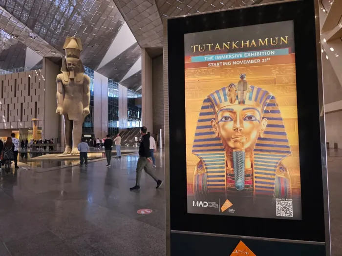 اكتمل بناء المتحف المصري الكبير على بعد كيلومترات من أهرامات الجيزة، إذ يُعدّ أكبر متحف في العالم مُخصص لحضارة واحدة "الحضارة المصرية"، ليقف المبنى الذي صممه مكتب هينيجان بينج الأيرلندي للعمارة على هضبة صحراوية بأطراف القاهرة، حاملًا 100 ألف قطعة أثرية تحكي قصة واحدة من أعرق الحضارات الإنسانية، بحسب ما أوردته مجلة بوم ديزاين المتخصصة في ثقافة العمارة والتصميم.