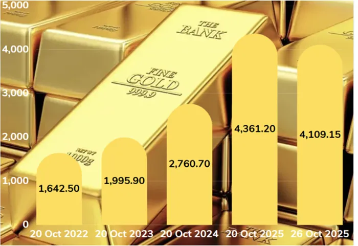 وعلى الرغم من انخفاض سعر الأونصة إلى 4109.15، 26 أكتوبر 2025، بسبب عمليات جني الأرباح من قبل المستثمرين، فإنه من المُحتمل بدرجة كبيرة ألا تعود إلى نفس المستويات في عامي 2022 و2023، فالطلب على الذهب سيظل في تقلب كبير.