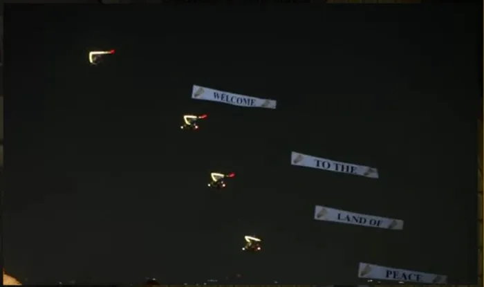 كما تضمنت الفعاليات عروضًا جوية مُصغرة لطائرات شراعية حملت لافتات كُتب عليها "أهلًا بكم في أرض السلام"، ترحيبًا بالضيوف. تبع ذلك عروض موسيقية فرعونية ضمن فعاليات الاحتفالية.