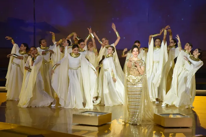 تألقت شريهان خلال الحفل، إذ رافق كلماتها عرض بصري خلاب على خلفية المسرح ظهر في سماء الأهرامات مع لقطات تبرز عظمة التاريخ المصري وحضارته الخالدة، في مشهد أبهر الحضور وأضفى على الاحتفالية لمسة ساحرة من الفن والجمال.
