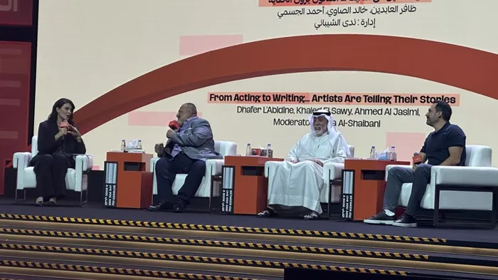 أما خالد الصاوي، فاستعرض علاقته العميقة بالكتابة والشعر، إذ قرأ للحضور مقتطفات من قصيدة بالعامية المصرية، مشيرًا إلى أنه لا يستطيع العيش دون الكتابة أو التمثيل، قائلًا: "أنا أكتب يوميًا وأدوّن كل ما أعيشه، الكتابة بالنسبة لي ضرورة لا هواية".