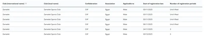كان نادي الزمالك تعرّض منذ أيام لإيقاف قيد 3 فترات لتصل إلى 6 فترات قيد إيقاف للنادي المصري.