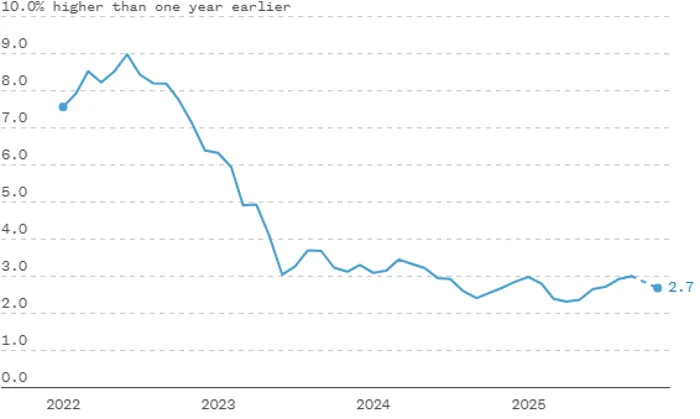 وبحسب البيانات الجديدة، انخفض معدل التضخم، نوفمبر الماضي إلى 2.7%، مُسجلةً انخفاضًا ملحوظًا عن معدل التضخم السنوي البالغ 3%، سبتمبر 2025، آخر شهر توفرت فيه بيانات كاملة، كما بلغ بذلك معدل التضخم أدنى مستوى له منذ يوليو الماضي.