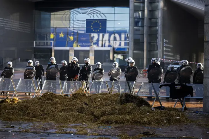 وفقًا لصحيفة "ذا تليجراف" البريطانية، ألقى المتظاهرون، اليوم الخميس، البطاطس والبيض، وأطلقوا الألعاب النارية، وأغلقوا الطرق المحيطة بالبرلمان الأوروبي في بروكسل، حيث كان القادة مجتمعين لإجراء محادثات بشأن أوكرانيا.