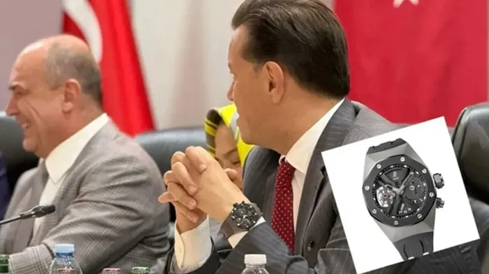 وشوهد لاحقًا ينيشهيرلي أوغلو، الذي لفت الأنظار إليه بساعته "الرولكس"، وهو يرتدي ساعة "أوديمار بيجيه رويال أووك" الفاخرة، تبلغ قيمتها في السوق 57,571 يورو، أي ما يعادل مليوني ليرة تركية تقريبًا، وفقًا لـ"ميريديين هابر".