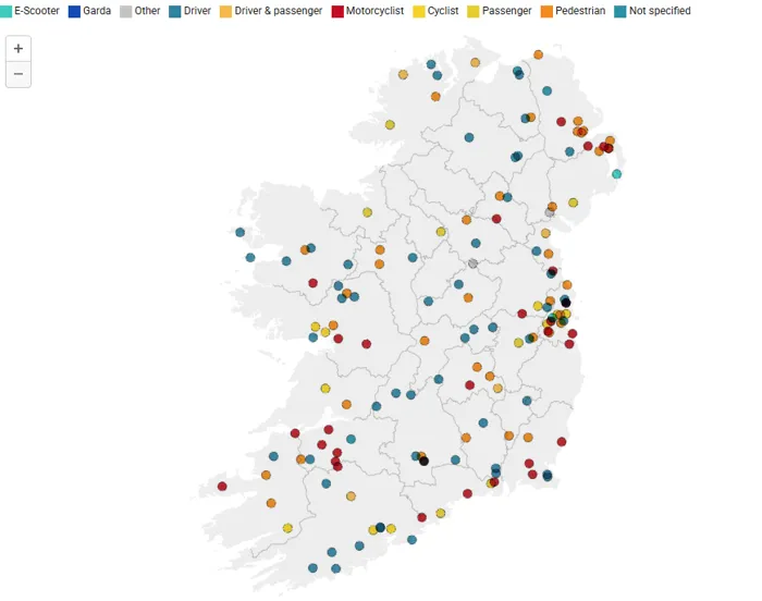وتشمل الوفيات، البالغ عددها 184 حالة حتى الآن هذا العام، 74 سائقًا، و30 سائق دراجة نارية، و43 من المشاة، و20 راكبًا، و14 من راكبي الدراجات الهوائية، وراكبين اثنين من الدراجات البخارية الكهربائية، وراكبًا خلفيًا.