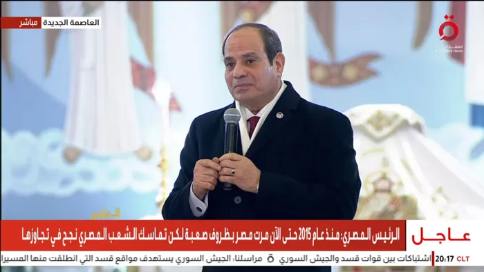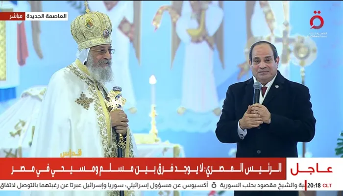 وقال الرئيس المصري، في كلمته باحتفالية عيد الميلاد المجيد بكاتدرائية ميلاد المسيح في العاصمة الجديدة، إنه منذ عام 2015 حتى الآن مرت مصر بظروف صعبة، لكن تماسك الشعب نجح في تجاوزها، مؤكدًا أنه "لا يوجد فرق بين مسلم ومسيحي في مصر".