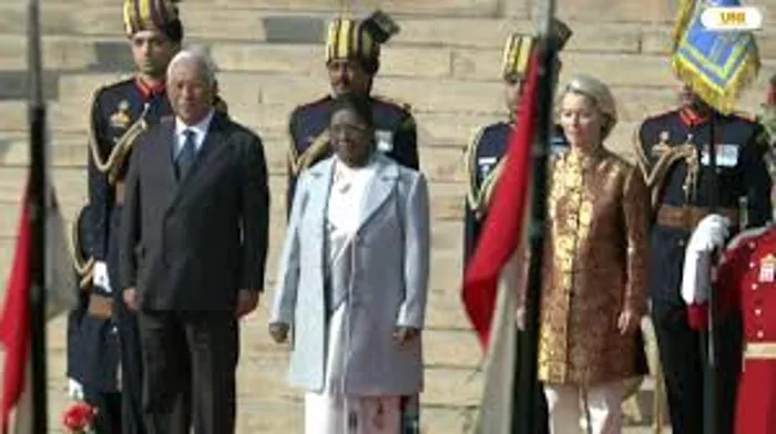 استقبلت الرئيسة الهندية دروبادي مورمو ضيفي الشرف الرئيسيين، وهما: رئيسة المفوضية الأوروبية أورسولا فون دير لاين، ورئيس المجلس الأوروبي أنطونيو كوستا، في عربة تقليدية تجرها الخيول متجهة نحو منصة التحية، فيما حضر الاحتفال رئيس الوزراء ناريندرا مودي، ووزير الدفاع راجناث سينج، وعدد من الوزراء وكبار القادة العسكريين والدبلوماسيين، بحسب صحيفة "تايمز أوف إنديا" الهندية.
