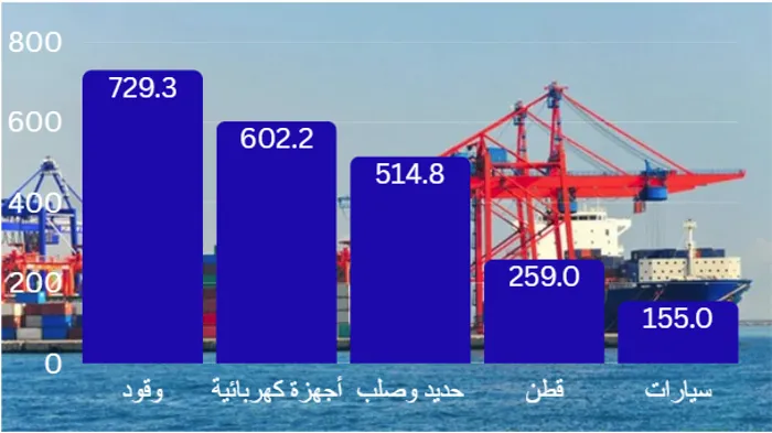 وبالنظر إلى الشكل (2)، يتضح أن الواردات المصرية من تركيا تتركز في سلع استراتيجية، إذ بلغت قيمة واردات الوقود نحو 729.3 مليون دولار، والأجهزة الكهربائية نحو 602.2 مليون دولار، والحديد والصلب نحو 514.8 مليون دولار، والقطن نحو 259 مليون دولار، والسيارات نحو 155 مليون دولار، وهو ما يوضح أنه مع تعزيز العلاقات التجارية بين مصر وتركيا ستنتعش تجارة هذه السلع بشكل أكبر، مما يحسن من أسعارها في السوق المصري.