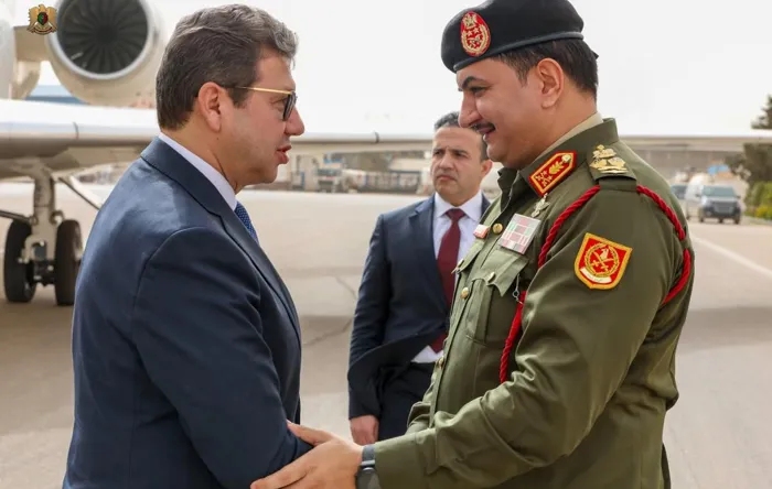 كان في استقبال رئيس المخابرات العامة المصرية والوفد المرافق له، فور وصولهم إلى مدينة بنغازي، نائب القائد العام للقوات المسلحة، الفريق أول ركن صدام حفتر.