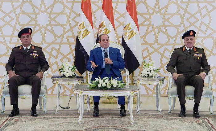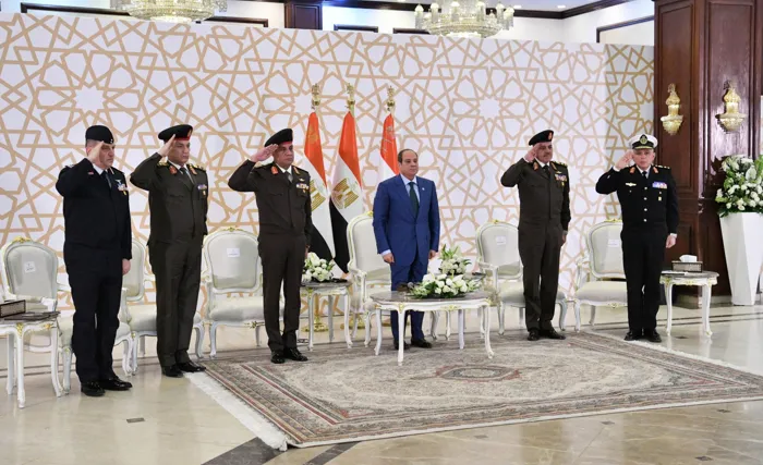 وأشار متحدث الرئاسة المصرية، إلى أنه عقب أداء الصلاة، التقى الرئيس السيسي بقادة القوات المسلحة المصرية، بحضور الفريق أشرف سالم زاهر القائد العام للقوات المسلحة وزير الدفاع والإنتاج الحربي، والفريق أحمد خليفة رئيس أركان حرب القوات المسلحة، وقادة الأفرع الرئيسية، حيث بدأ اللقاء بتقديم الرئيس التهنئة للقوات المسلحة بمناسبة ذكرى انتصارات العاشر من رمضان، والتي تأتي بالتزامن مع احتفال مصر والقوات المسلحة بذكرى يوم الشهيد والمحارب القديم، موجِّهًا التحية لأرواح شهداء الوطن الأبرار التي أنارت الطريق بكل العزة والفخر لاستكمال مسيرة العطاء بربوع الدولة المصرية كافة في جميع المجالات.