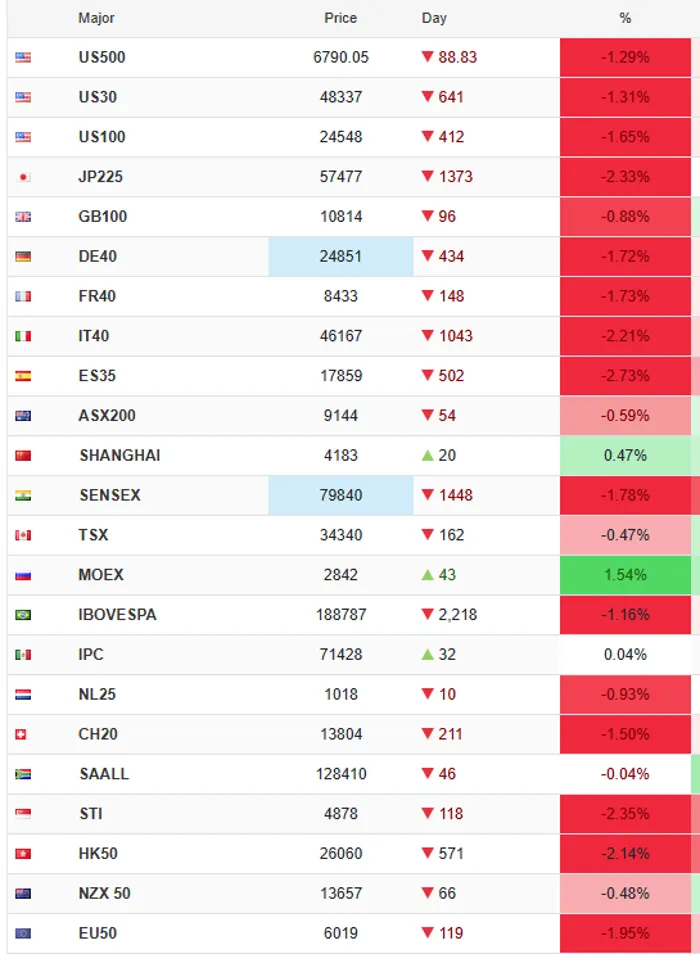 ومن ناحية أخرى، تراجع مؤشر نيكاي 225 القياسي بنسبة 0.9%، كما تراجع مؤشر توبكس الأوسع نطاقًا بنسبة 1.1%، وكما يوضح الشكل (2) فمعظم المؤشرات الرئيسية للبورصات العالمية تشهد تراجعًا في أدائها في بداية تداول يوم الاثنين 2 مارس، وهو ما يدل عليه اللون الأحمر في الشكل.