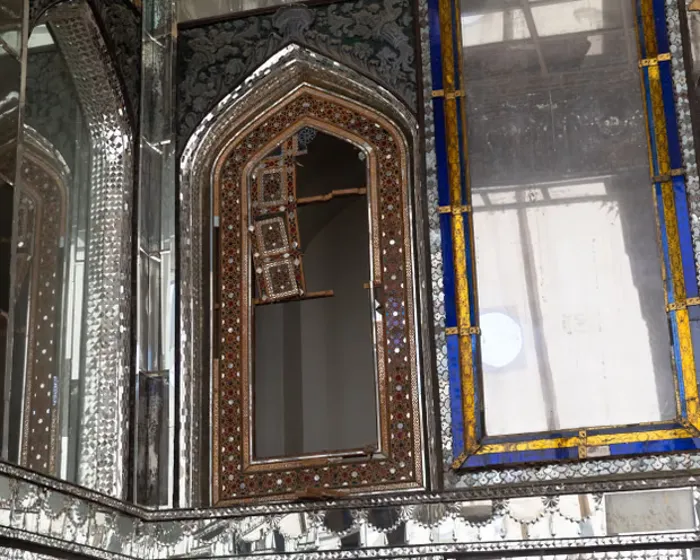 يعد قصر جولستان في العاصمة الإيرانية طهران من أبرز المعالم التي طالتها الأضرار. ووفق مقاطع فيديو وصور متداولة من الموقع، تعرضت قاعة المرايا الشهيرة داخل القصر لدمار ملحوظ، حيث تحطم جزء كبير من الزخارف المرآتية الدقيقة التي تزين الجدران والسقف، وتناثرت شظاياها على أرضية القاعة.