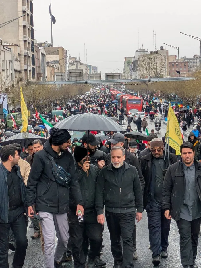 وشارك في المسيرات عدد من المسؤولين الإيرانيين، من بينهم أمين المجلس الأعلى للأمن القومي علي لاريجاني الذي ظهر علنًا في شوارع طهران خلال الفعاليات، في ما اعتبر رسالة تحد في ظل التوترات المتصاعدة، كما بثّ التلفزيون الإيراني لقطات تظهر مشاركة رئيس السلطة القضائية وقائد قوات الشرطة الإيرانية في المسيرات.