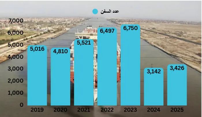 ولكن مع الاهتمام الكبير في الدولة باقتصاد الموانئ، تحسن مرور السفن بشكل ملحوظ، إذ ارتفع إلى 6750 سفينة في عام 2023، ولكن تسببت أحداث السابع من أكتوبر 2023، في انخفاض عدد السفن المارة لـ3142 سفينة، ومع اشتعال الأحداث في المنطقة بشكل أكبر مع تصاعد هجمات الحوثي بالتزامن مع الحرب الإسرائيلية في غزة، سجل عدد السفن انخفاضًا عن الفترات السابقة، إذ سجل 3426 سفينة عام 2025، العدد الذي من المؤكد سيشهد انخفاضًا مع تزايد وتيرة الصراع بعد الهجوم الأمريكي الإسرائيلي على إيران.