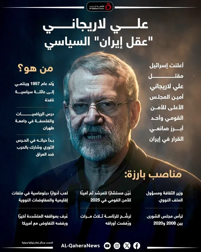 وصباح الثلاثاء، أعلنت إسرائيل، مقتل علي لاريجاني، ليصبح من أبرز ضحايا الاغتيالات في القيادة العليا، وربما الأكثر أهمية مقارنة بغيره.