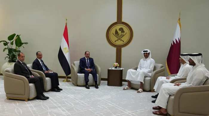كما ناقش الزعيمان عددًا من القضايا الإقليمية ذات الاهتمام المتبادل، واتفقا على تكثيف التشاور المصري القطري في الفترة المقبلة حول سبل خفض التصعيد واستعادة الاستقرار الإقليمي.