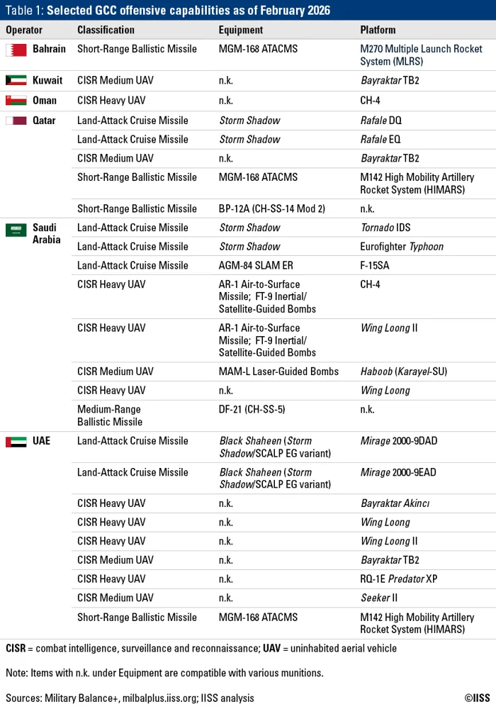 يرى معهد الدراسات الإستراتيجية البريطاني "IISS"، أن نجاح الدفاعات الخليجية يرتكز على إستراتيجية الدفاع متعدد الطبقات، إذ إن القدرات الدفاعية تضم عددًا من المنظومات الدفاعية المشتركة، أبرزها منظومة ثاد، التي يصل مدى الصاروخ فيها إلى 200 كيلومتر.