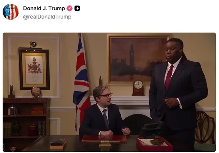ونشر ترامب، عبر منصته "تروث سوشيال" للتواصل الاجتماعي، مقطعًا من النسخة البريطانية لبرنامج "ساترداي نايت لايف"، يظهر فيه ممثلون يجسدون شخصيتي ستارمر ووزير الخارجية البريطاني ديفيد لامي، في مشهد ساخر يُظهر رئيس الوزراء وهو يتجنب مكالمة هاتفية من ترامب ويعبر عن قلقه من التحدث معه.