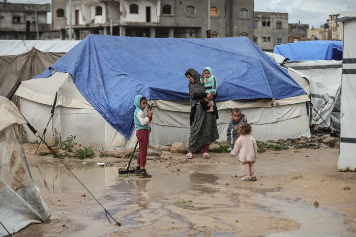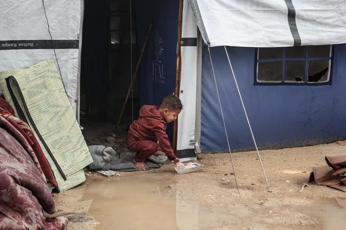 لا يزال فلسطينيو غزة في مخيم البريج يكافحون لمواصلة حياتهم، في ظل ظروف معيشية تزداد صعوبة مع البرد الشديد والأمطار الغزيرة التي غمرت مساكنهم المؤقتة.