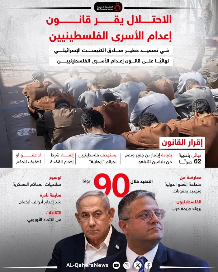 تعرض قانون إعدام الأسرى الفلسطينيين، الذي أقره الكنيست الإسرائيلي، مساء أمس الاثنين، إلى موجة من الانتقادات الدولية والحقوقية، وإدانته على نطاق واسع، بسبب تكريسه للتمييز والعنصرية اللذين يعاني منهما الشعب الفلسطيني على مدار عقود.