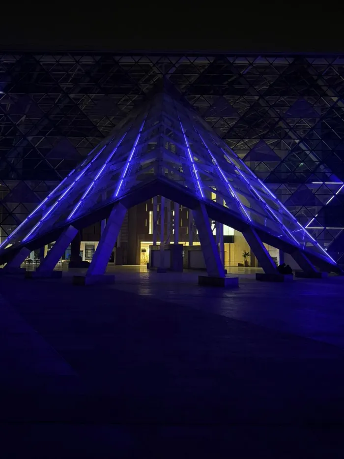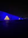 أضاء المتحف المصري الكبير، اليوم الموافق الثاني من أبريل، واجهته باللون الأزرق، احتفالًا باليوم العالمي للتوعية باضطراب طيف التوحد، في إطار مشاركته في دعم المبادرات المجتمعية والإنسانية، وتعزيز الوعي بقضايا ذوي الهمم.
