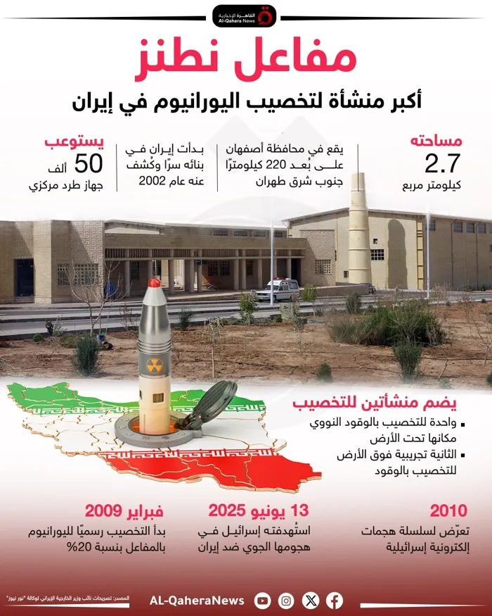 أعلنت منظمة الطاقة الذرية الإيرانية، اليوم السبت، أنها لم تُسجل أي تلوث أو زيادة في مستويات الإشعاع خارج منشأة نطنز.