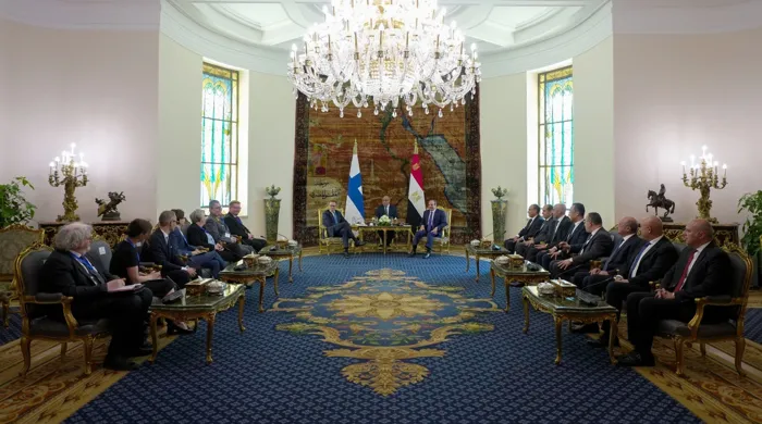 وأضاف الرئيس الفنلندي خلال حديثه، أننا بحاجة إلى قوة دولية منطقية ودائمًا ما نتحدث عن الحلول للمشكلات، وهنا أشكر مصر لجهودها في تحقيق الاستقرار والسلام بالمنطقة، وبحثها عن الحلول السلمية سواء في غزة أو النزاع الحالي بإيران.