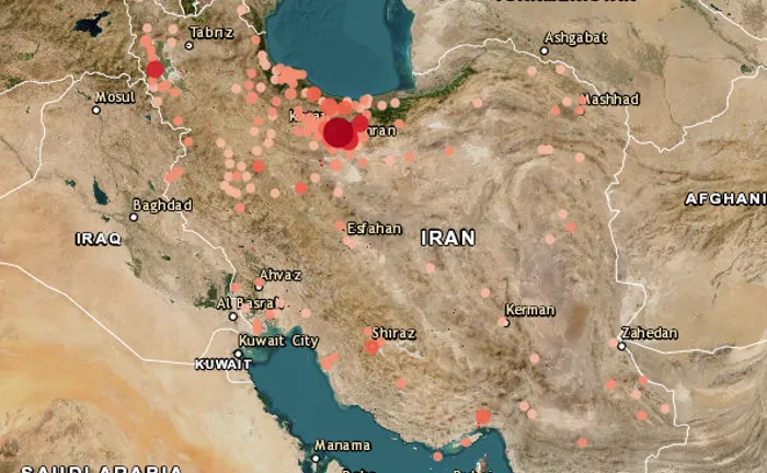 ووفقًا للتحليل، كانت مدينة طهران، التي يبلغ عدد سكانها حوالي 9 ملايين نسمة، الأكثر تضررًا من بين جميع المحافظات الإيرانية، والتي تضاهي في حجمها مدينة نيويورك، وتمتد الأحياء الجنوبية المكتظة فيها بالسكان إلى سفوح جبال البرز، وتتألف معظم الأحياء من مزيج من المباني السكنية والمجمعات التجارية والمتاجر والبنوك والمباني الحكومية.