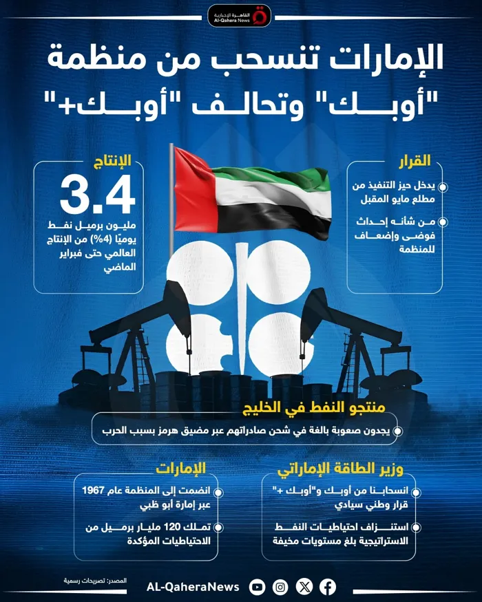 من جهته، وصف الدكتور جمال القليوبي، أستاذ هندسة البترول والطاقة، قرار انسحاب دولة الإمارات من منظمة "أوبك" بأنه خطوة تمليها التزامات اقتصادية حيوية تجاه مواطنيها وإيراداتها الوطنية.