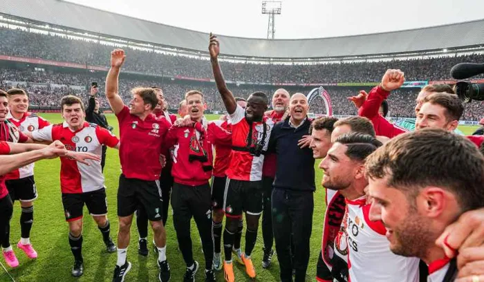 توج فريق فينورد روتردام بطلًا للدوري الهولندي للمرة الـ16 في تاريخه، بعد الفوز على ضيفه "جو أهيد إيجلز" بثلاثية نظيفة، اليوم الأحد، على ملعب فينورد، ضمن منافسات الجولة الـ32.