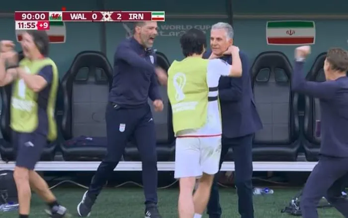 آزمون اتجه نحو كيروش، عقب الهدف الثاني لمنتخب إيران، ووضع يديه على رقبة المدرب البرتغالي "بطريقة غريبة"، حيث ظهر وكأنه يخنقه، ليرفع اللاعب يديه بسرعة ويدخل في وصلة ضحك "قصيرة" مع المدرب البرتغالي بسبب رد فعله "العفوية".